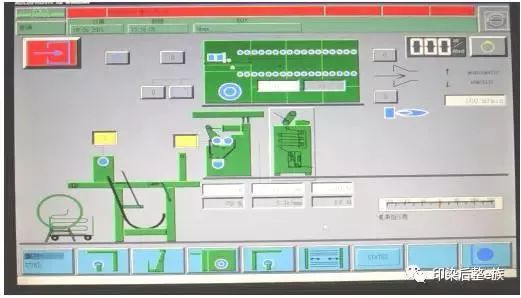 2.1 加工完布后把導(dǎo)布引入到操作臺(tái)處,撕開導(dǎo)布,點(diǎn)擊進(jìn)布總控制按鈕至紅色,關(guān)閉上針保護(hù)入口按鈕至“0”。開動(dòng)機(jī)器后半部分,待導(dǎo)布頭到達(dá)出布 超喂輥時(shí)停機(jī),把導(dǎo)布與導(dǎo)帶連接,關(guān)閉冷卻筒張力馬達(dá)至“0”開動(dòng)機(jī)器后半部分至導(dǎo)布完全出出布架停機(jī)。關(guān)閉出布總控制按鈕至紅色,開動(dòng)機(jī)器讓鏈條空轉(zhuǎn)。