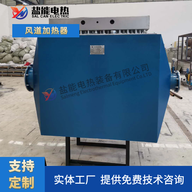 風(fēng)道加熱器主要用于風(fēng)道中的空氣加熱,規(guī)格分低溫、中溫、高溫三種形式,在結(jié)構(gòu)上的共同之處是采用了用鋼板支撐電熱管以減少風(fēng)機(jī)停止時(shí)電熱管的振動(dòng),在接線盒中都裝有超溫控制裝置。低溫型可直接安裝在風(fēng)道上,而中溫型、高溫型由于結(jié)構(gòu)上的不同,在通道外壁至加熱器接線盒夾有100mm厚的保溫材料,一方面減少整個(gè)通道的對(duì)外散熱,另一方面也減少了接線腔內(nèi)的溫度。