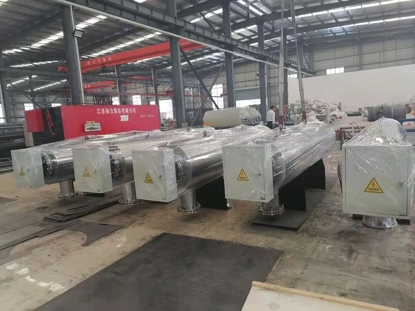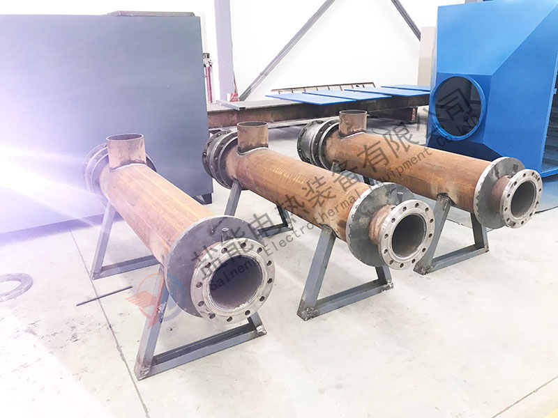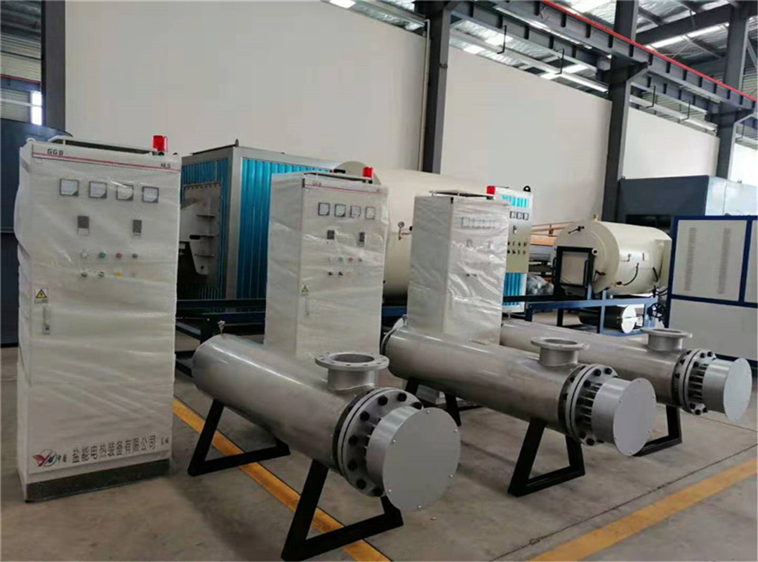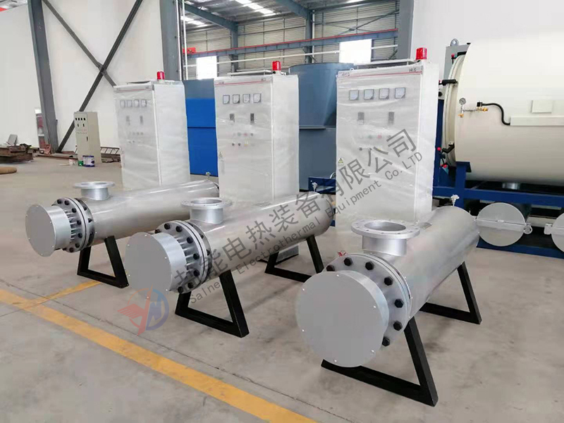 管道式液體加熱器是主要對液體流進(jìn)行加熱的電加熱設(shè)備。加熱器的發(fā)熱元件為不銹鋼電加熱管,加熱器內(nèi)腔設(shè)有多個折流板(導(dǎo)流板),引導(dǎo)液體流向,延長液體在內(nèi)腔的滯留時間,從而使液體充分加熱,使液體加熱均勻,提高熱交換效率。加熱器的加熱元件為不銹鋼無縫鋼管內(nèi)裝入電熱絲,空隙部分填滿有良好導(dǎo)熱性和絕緣性的氧化鎂粉后縮管而成的。當(dāng)電流通過高溫電阻絲的時候,產(chǎn)生的熱通過結(jié)晶氧化鎂粉向加熱管表面擴(kuò)散,再傳遞到被加熱液體中去,以達(dá)到加熱的目的。