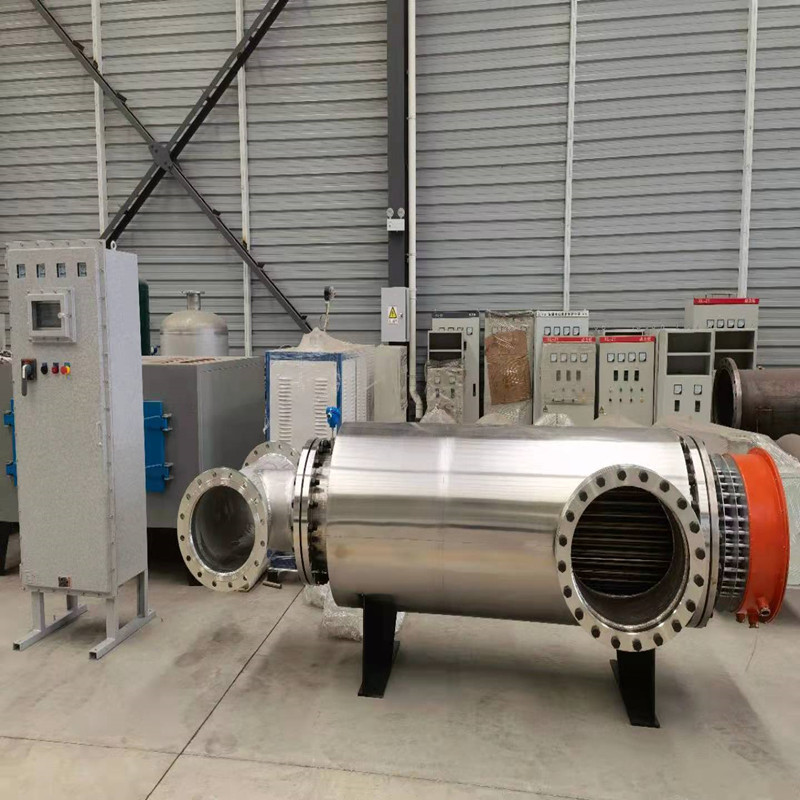 管道式液體加熱器是主要對(duì)液體流進(jìn)行加熱的電加熱設(shè)備。加熱器的發(fā)熱元件為不銹鋼電加熱管,加熱器內(nèi)腔設(shè)有多個(gè)折流板(導(dǎo)流板),引導(dǎo)液體流向,延長液體在內(nèi)腔的滯留時(shí)間,從而使液體充分加熱,使液體加熱均勻,提高熱交換效率。加熱器的加熱元件為不銹鋼無縫鋼管內(nèi)裝入電熱絲,空隙部分填滿有良好導(dǎo)熱性和絕緣性的氧化鎂粉后縮管而成的。當(dāng)電流通過高溫電阻絲的時(shí)候,產(chǎn)生的熱通過結(jié)晶氧化鎂粉向加熱管表面擴(kuò)散,再傳遞到被加熱液體中去,以達(dá)到加熱的目的。